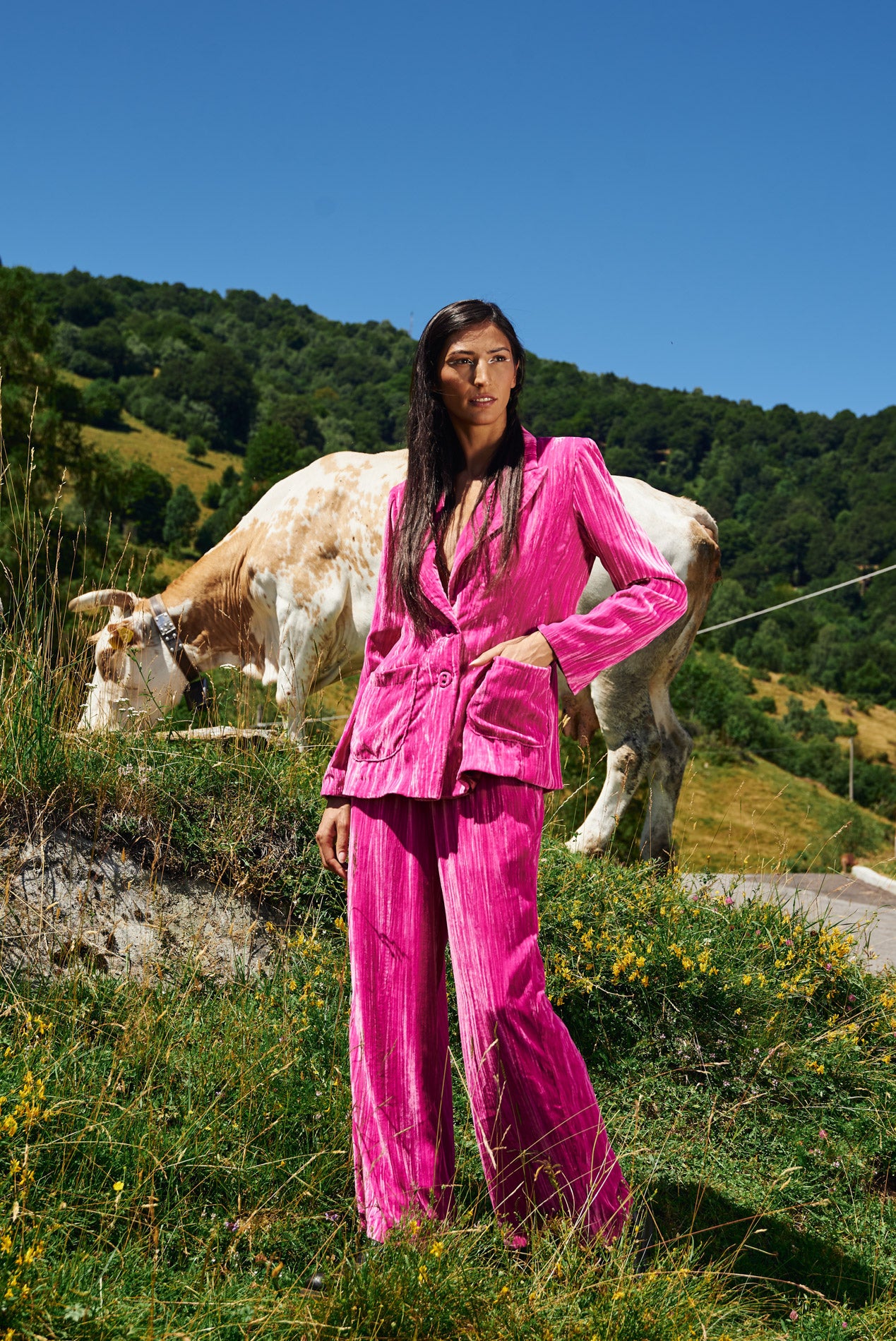 PANTALONE IN VELLUTO GRINZATO CON ELASTICO IN VITA
