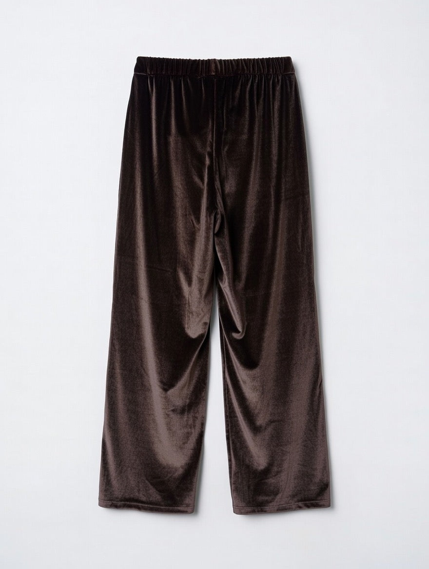 Pantalone in velluto devoré che gioca con texture e trasparenze. La vestibilità morbida e l’elastico in vita garantiscono comfort, mentre il tessuto prezioso ne fa un capo di forte personalità. Pezzo unico realizzato per la sfilata Erendira.