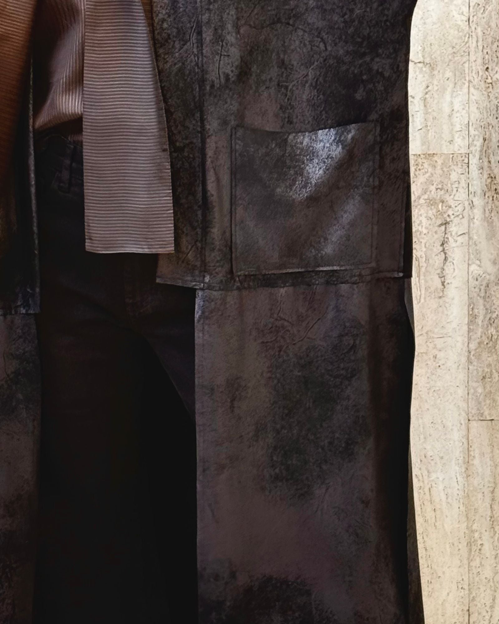 Un capo urban e raffinato, perfetto da indossare come giacca leggera o spolverino sotto il cappotto, da abbinare a un denim, una camicia o un abito per un look che unisce eleganza e versatilità.