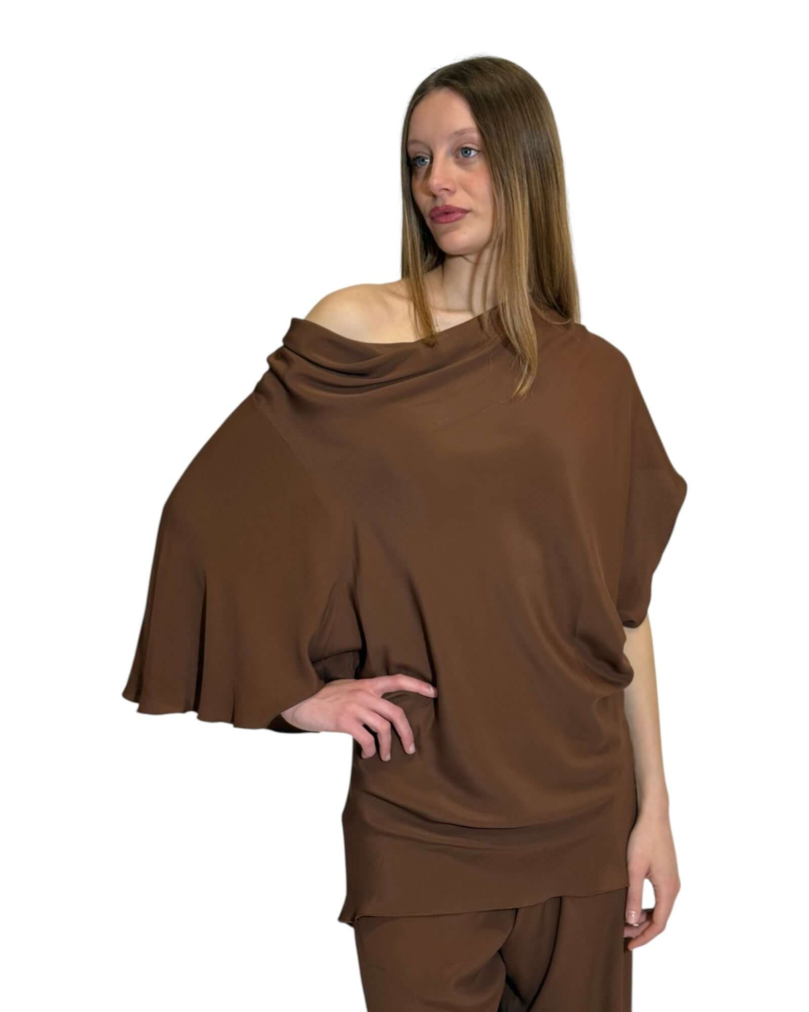 BLUSA ASIMMETRICA IN CREPE DE CHINE CACAO