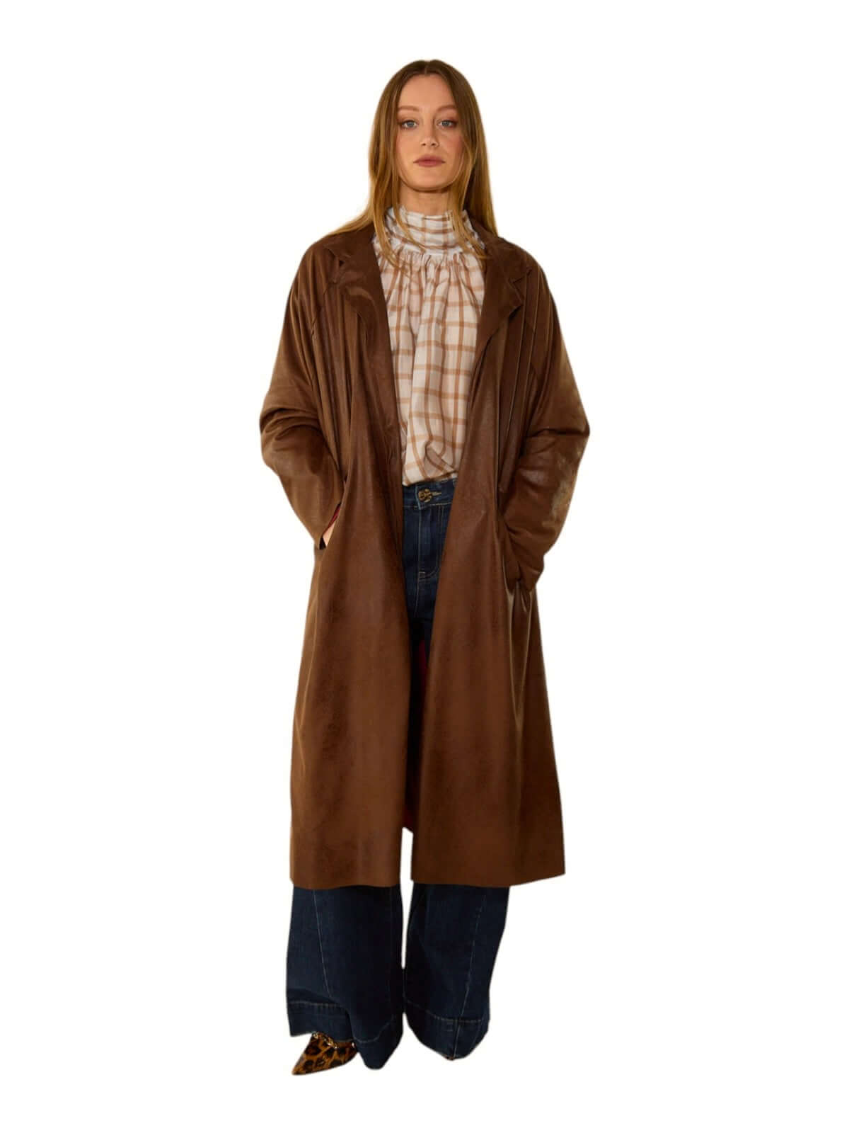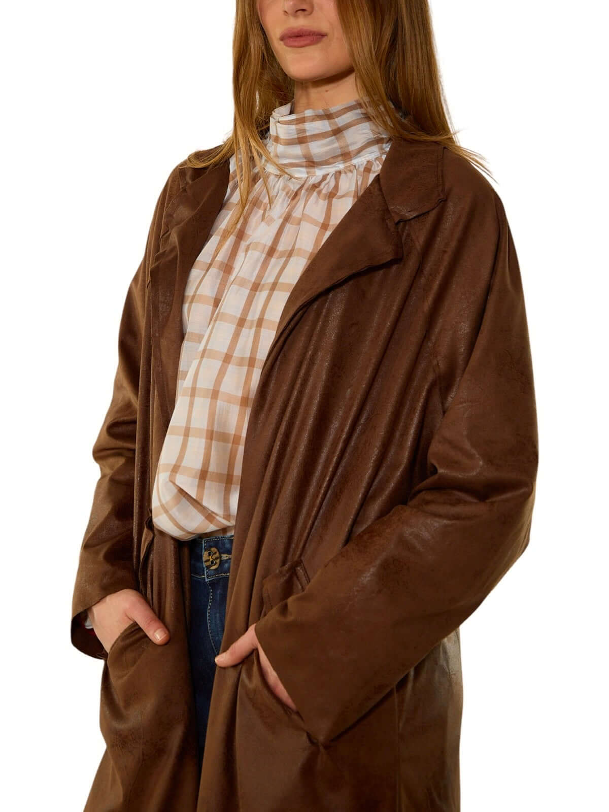 Leggero ma strutturato, attraversa la stagione con eleganza e carattere. Da indossare come trench o come spolverino sopra maglie e denim.