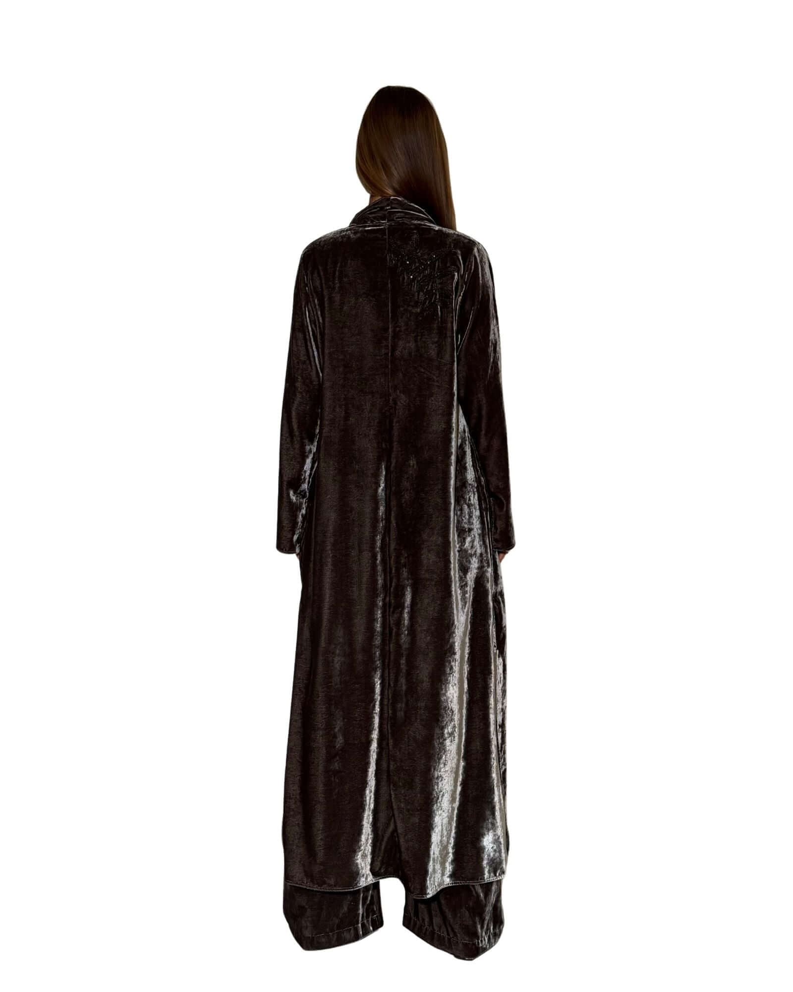 Lo Spolverino Papiro è un capo iconico che celebra l’eleganza contemporanea.