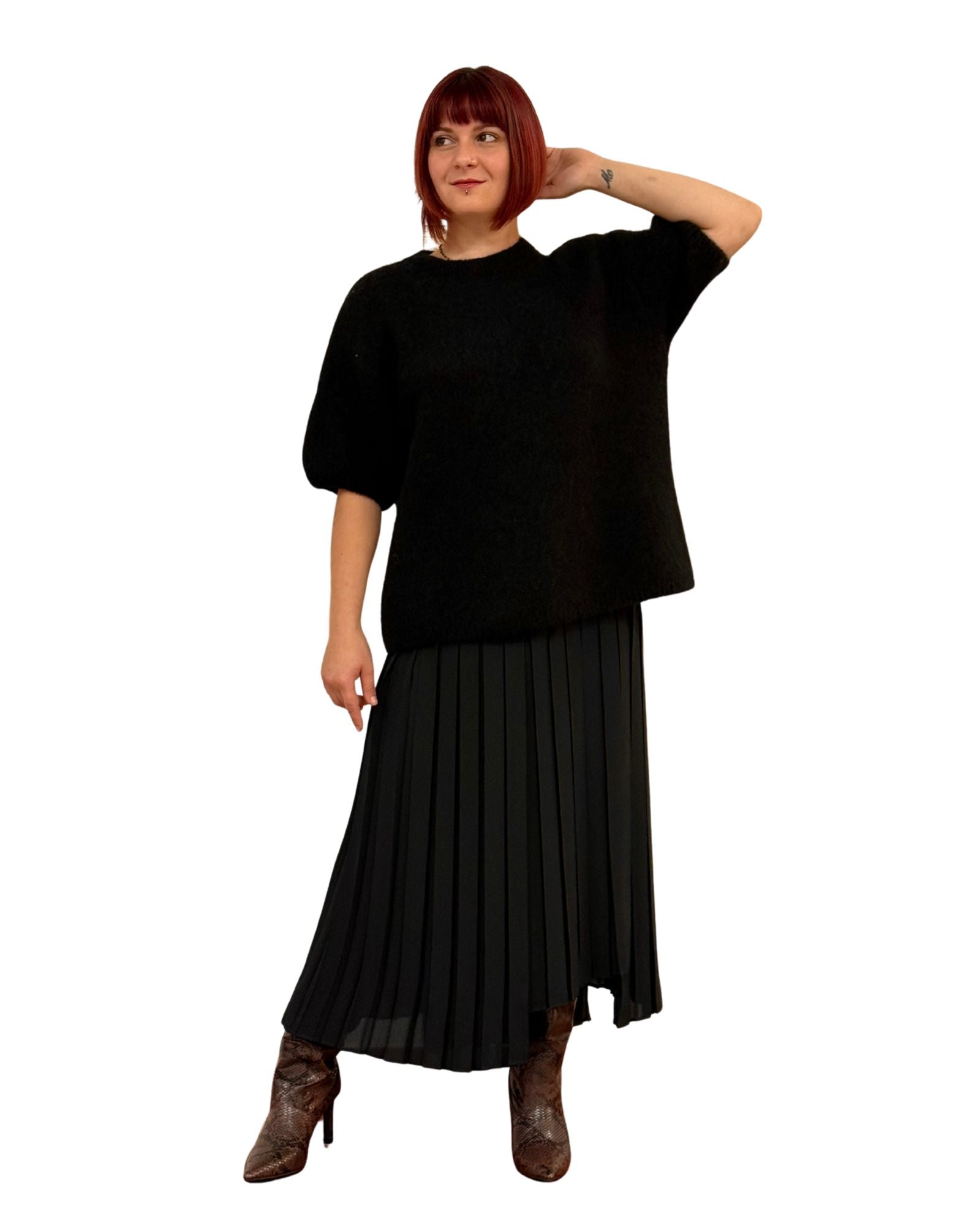 Mini skirt with elastic peplum and edged ruffles, designed for a modern look full of personality. Light and exuberant, it effortlessly accompanies city days and lends itself to being styled with boldness and character. Iconic with its matching shirt, surprisingly versatile to pair with a high boot or an ankle boot.