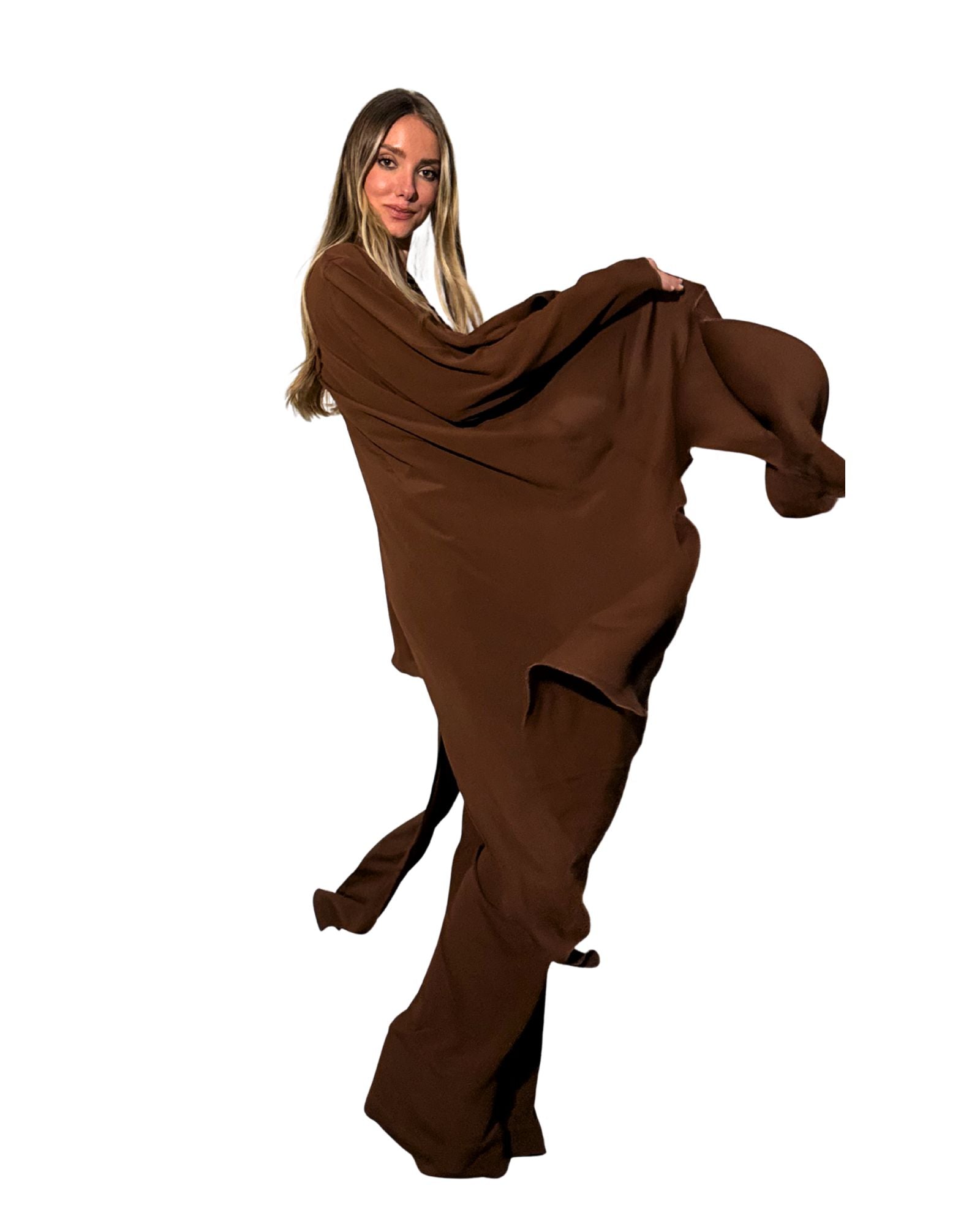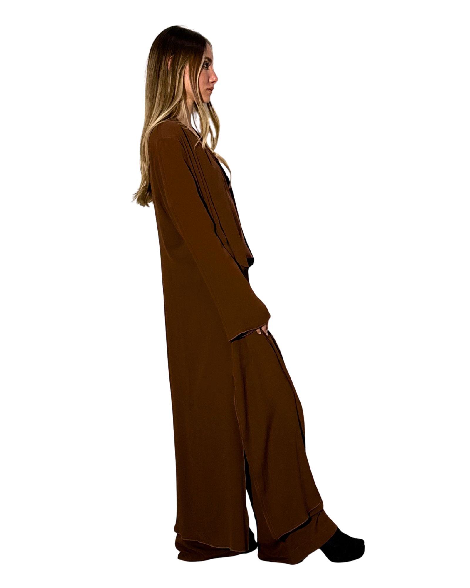 Realizzato in crepe de chine con seta, questo capo unisce eleganza sartoriale e fluidità naturale.