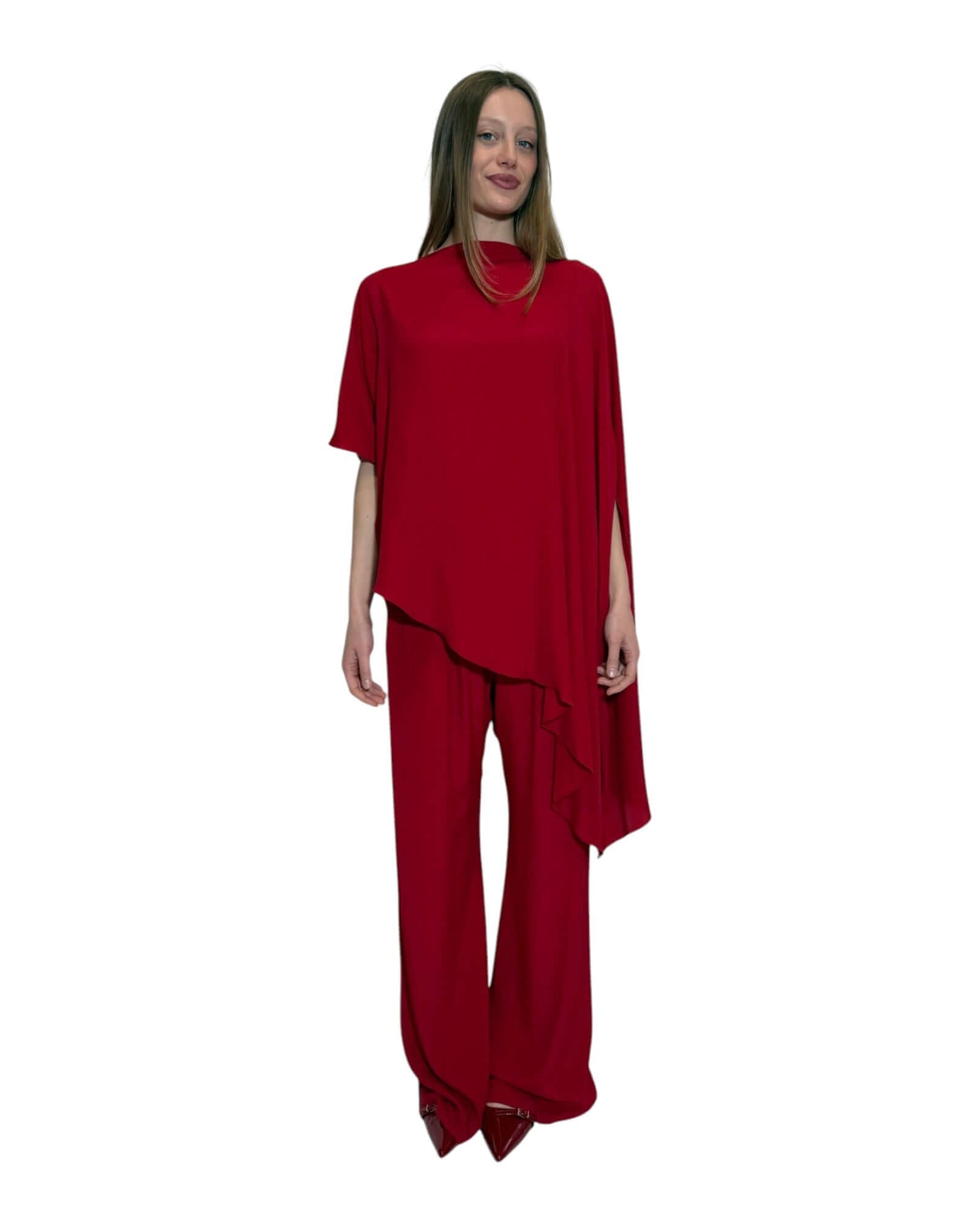 TUNICA A CAPPA IN CREPE DE CHINE ROSSO